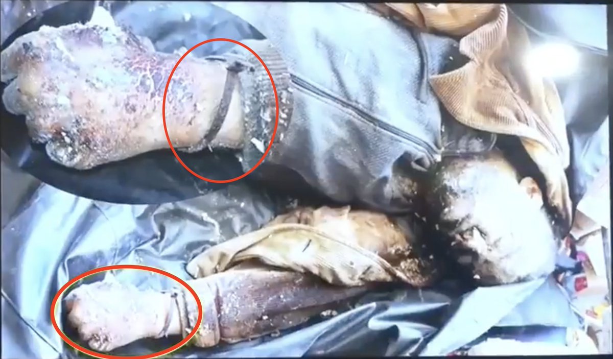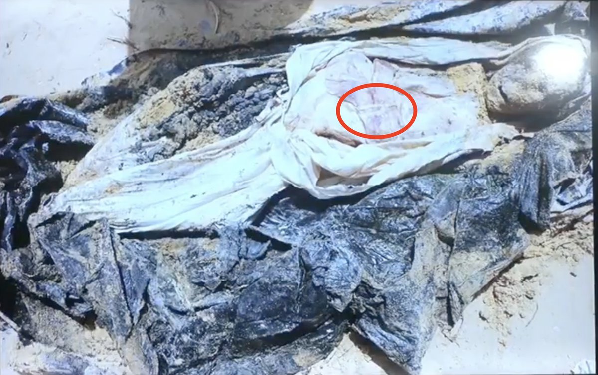 3\ At the mass grave, bodies of patients were discovered, buried in their hospital gowns & tied The body to the right belongs to a girl whose leg was amputated after being wounded in an Israeli airstrike. Her family says she was still alive at the hospital when Israel raided it. https://t.co/HUJiDpGzin