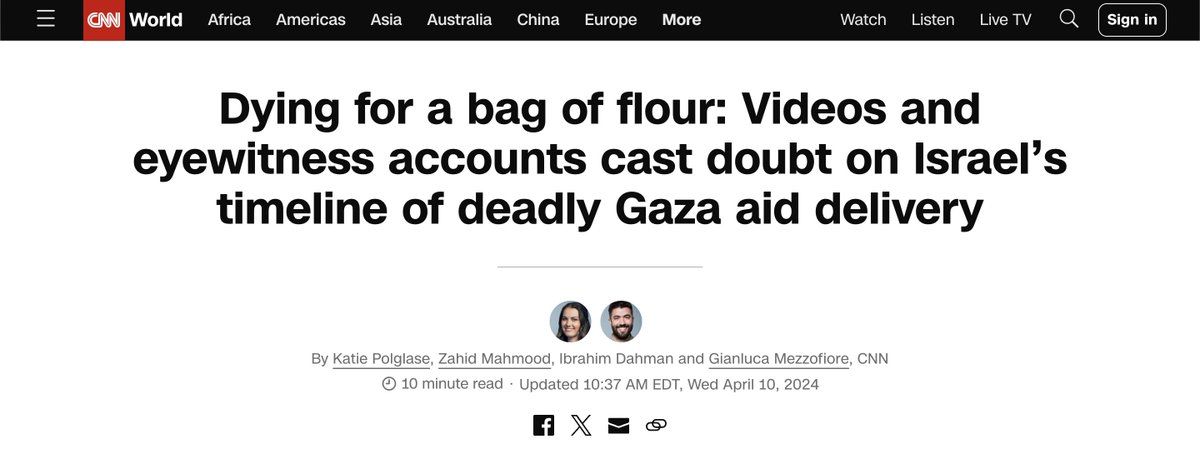 15\ The flour massacre: Israel slaughtered over 100 starved Gazans awaiting aid trucks & wounded over 700 On Feb 29, then claimed they had nothing to do with these deaths & it was a stampede. CNN found the IDF used machine guns that fired 600 rounds per minute at the crowds! https://t.co/2SjxXr6Zxj