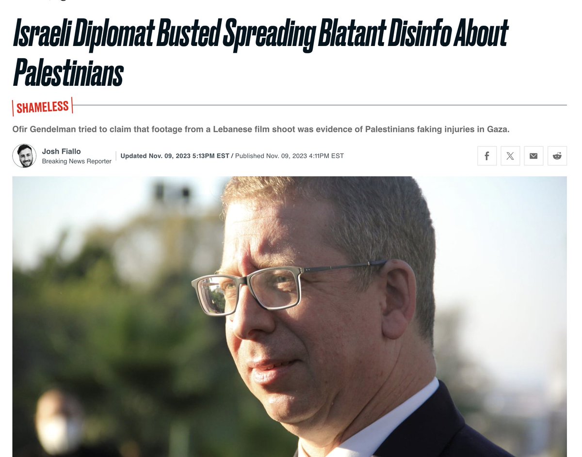 20\ In Nov, the Israeli Prime Minister's Spokesperson uploads the bloopers of a video clip from Lebanon & claims it shows Palestinians "staging" their death & suffering. He quietly deleted it after getting busted. https://t.co/sPdVXxkmTl