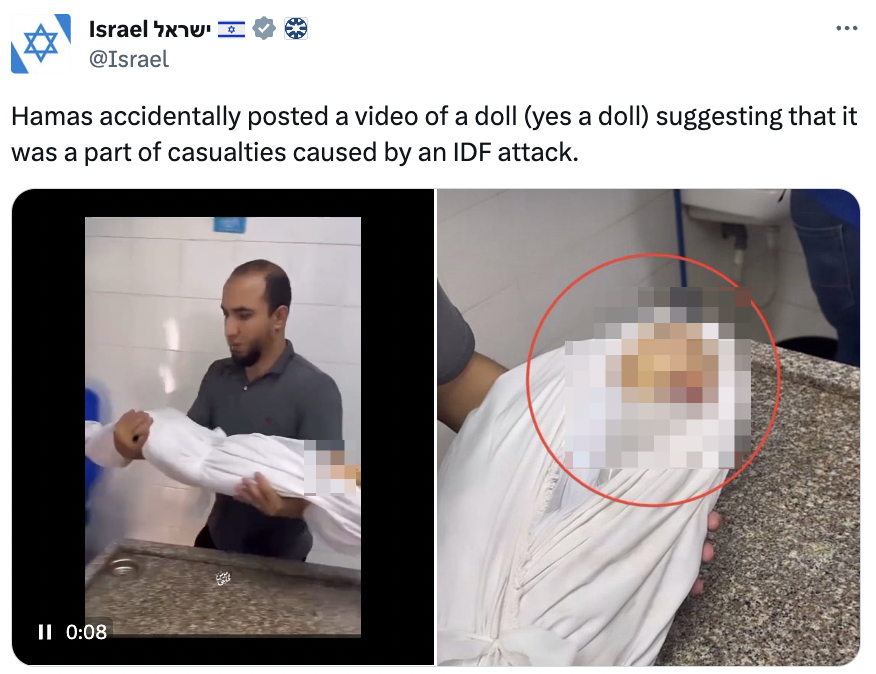 7\ In Oct, Israel's gov was claiming dead children in Gaza were "plastic dolls" That child was quickly identified as Omar al-Banna, slaughtered in an Israeli airstrike. That didn't stop Israel's gov from continuing to claim dead Gaza children were "fake" or "staged" or "dolls"! https://t.co/Yv9IKhZDxK