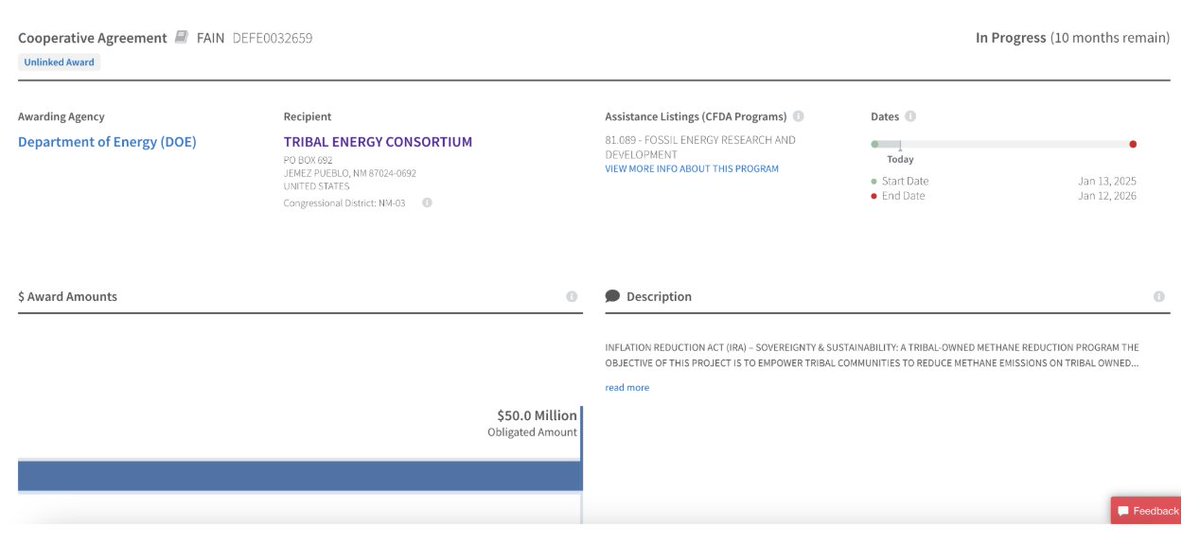 The $50M grant โ from the Department of Energy โ was approved on Jan. 13 for the Tribal Energy Consortium. It is a 501(c)(3) charity on Indian tribal land focused on energy and mineral development.