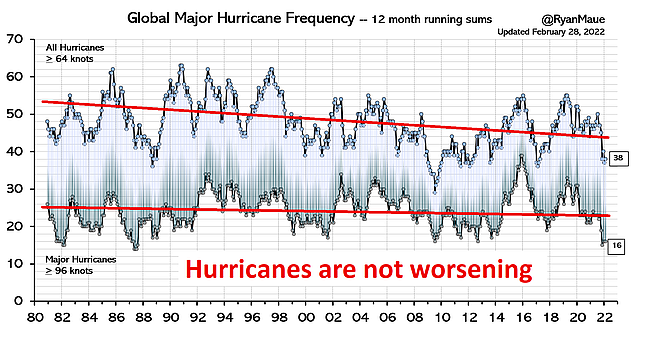 3/6. In fact, none of the supposed major harms from #ClimateChange which the climate industry's FUD-based marketing predicts have actually come to pass. Hurricanes and tropical cyclones have not worsened, nor'easters have not worsened, coastal sealevel trends have scarcely changed, flooding hasn't detectably worsened, drought impacts have decreased, and severe tornadoes have decreased.