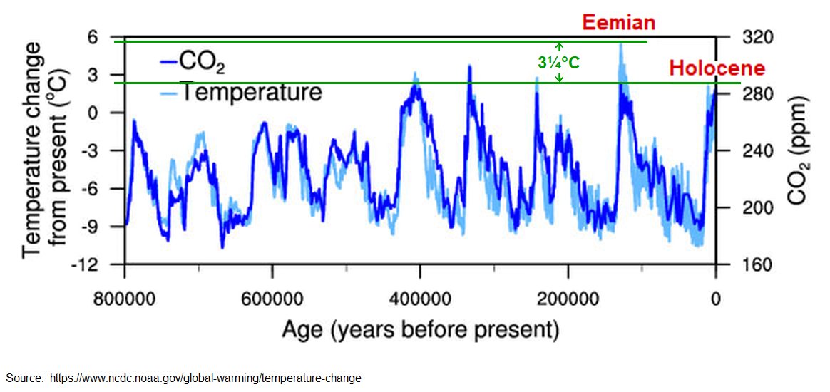 2/18. We don't need to engineer "elephants that can better survive the climatic ravages of a warming world." The existing elephants survived the mid-Eemian Climate Optimum, which was clearly warmer than now. Here's a NOAA graph: https://sealevel.info/Temperature-change-and-carbon-dioxide-change-measured-from-the-EPICA-Dome-C-ice-core-in-Antarctica-v5_200pct.png (I added the annotation, identifying the Eemian and Holocene [current] temperatures.)