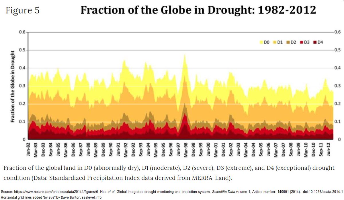 1/12ใIan James @ByIanJames, you reported that, "Research has shown that human-caused climate change is driving worsening droughts in the western United States." That is false. Droughts have not worsened, either in the United States, or globally: https://sealevel.info/learnmore.html?0=droughts#droughtsโฆ https://sealevel.info/Fraction_of_the_Globe_in_Drought_1982-2012_fig5c.png
