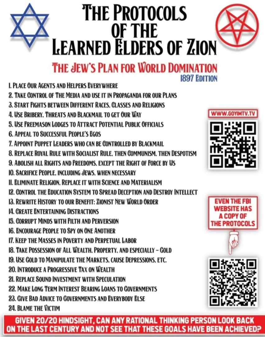 Wikipedia says the Protocols of the Learned Elder of Zion is a debunked antisemitic conspiracy theory Yet, even though the Protocols were first published in 1903 they seem to be coming closer and closer to fruition with every passing day Here’s a short synopsis of the Protocols https://t.co/QDNJuWqiGF