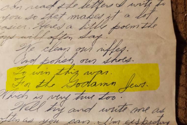 An American soldier's letter from 1945, a week before he was killed in action: "We clean our rifles, and polish our shoes. To win this war, for the Goddamn Jews." https://t.co/1f695auFVo