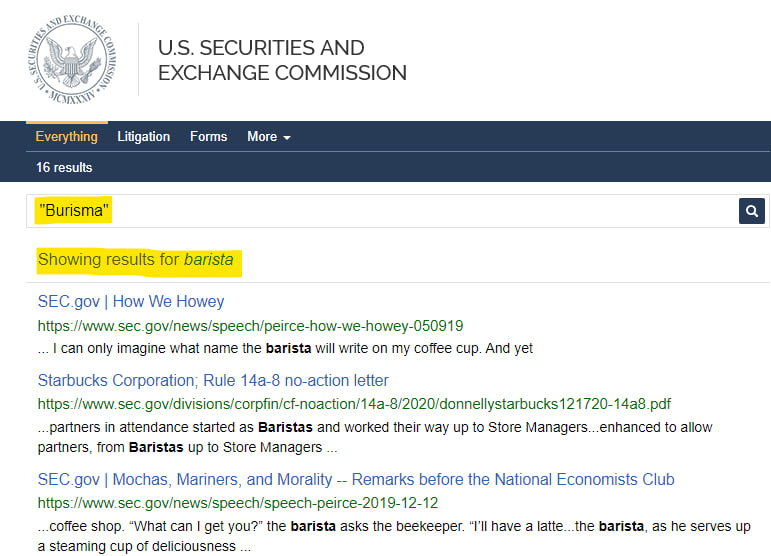 Hey @SECGov How come when I search for "Burisma" on your website, it only shows results for "Barista?" I know you have official SEC links with "burisma" included like this one here: https://sec.gov/Archives/edgar/data/874792/000114420409017936/v144694_10k.htm So why can't I search your website for this particular word? https://www.sec.gov/Archives/edgar/data/874792/000114420409017936/v144694_10k.htm So