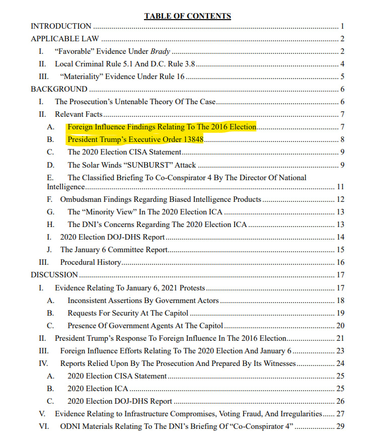 Donald Trump files "Motion to Compel Discovery" for his J6 case... Very interesting stuff in here: - Interference in 2016 and 2020 elections - EO 13848 and the report it requires -Solarwinds Hack Thread coming later... Link in next tweet https://t.co/Q7W6k2RZlZ