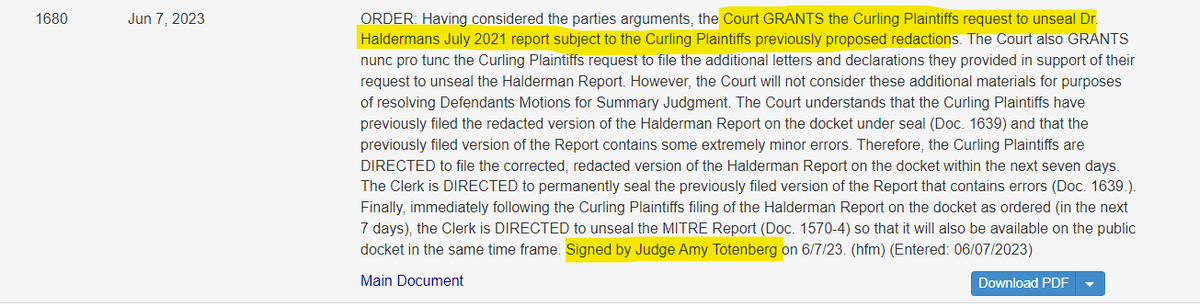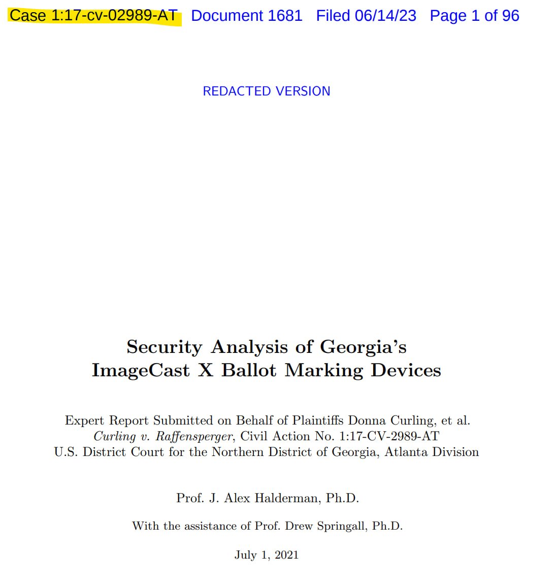 Here is where it connects to the Halderman report. The report was under seal in a court case in GA. Judge Amy Totenberg just ordered the unsealing on Jun 7th.