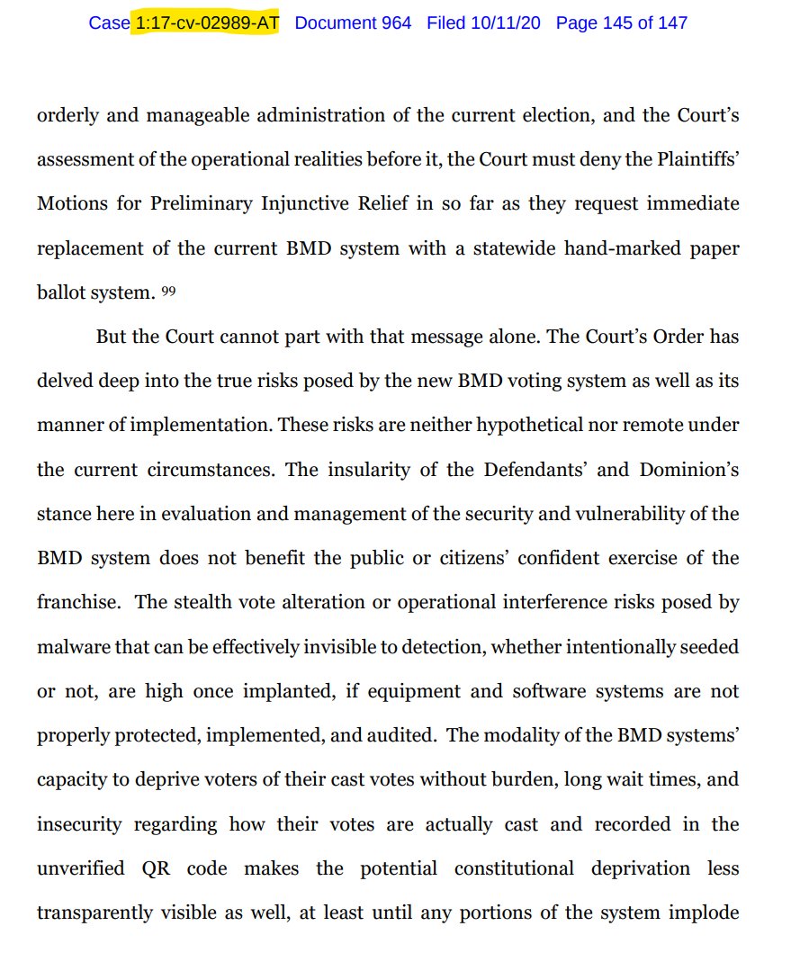 Yes. In Trump's Draft EO, he quoted one of the Judge's order from the same exact case we just got the Halderman report from... See for yourself... Order quoted in Draft EO: https://storage.courtlistener.com/recap/gov.uscourts.gand.240678/gov.uscourts.gand.240678.964.0_1.pdf Halderman Report: https://storage.courtlistener.com/recap/gov.uscourts.gand.240678/gov.uscourts.gand.240678.1681.0.pdf