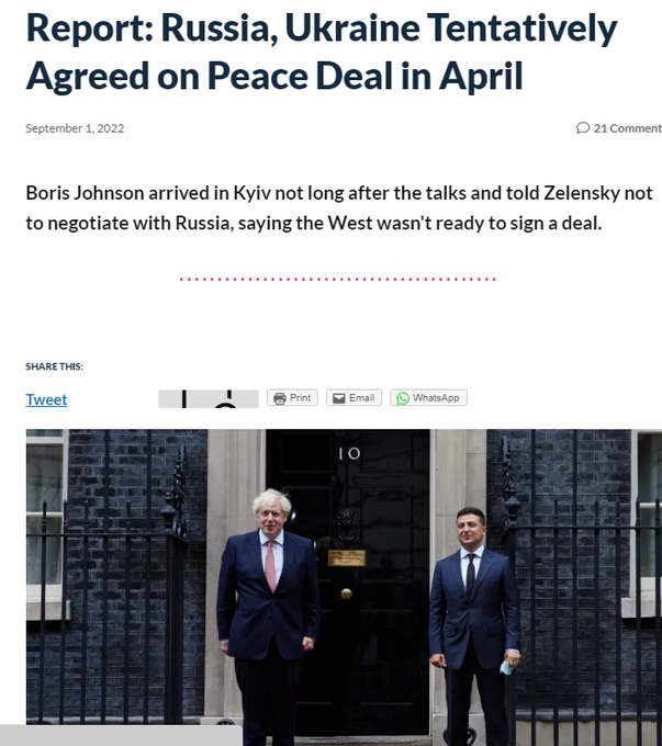 Waarom saboteerde Boris Johnson persoonlijk het op tafel liggende vredesakkoord tussen Oekraïne en Rusland? Geld! https://t.co/9Gpmm45W8T