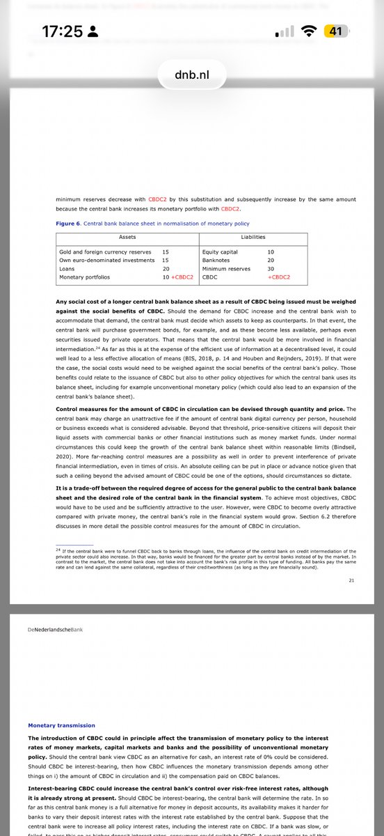 @patricksavalle @AndereKrant @cafeweltschmerz @blckbxnews @gezondverstand Ik weet niet waar deze rare aanval vandaan komt. Als jij graag een digitaal paspoort wil, prima. Maar dit klopt niet. Bv 2: balans effecten van uitgifte cbdc. Optelsom gelijk houden is cash uitfaseren. Enz enz. https://www.dnb.nl/en/publications/research-publications/occasional-study/nr-1-2020-central-bank-digital-currency-objectives-preconditions-and-design-choices/