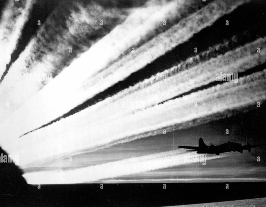 Zelfs in de 2e wereldoorlog werd de lucht regelmatig gevuld met persistente contrails.