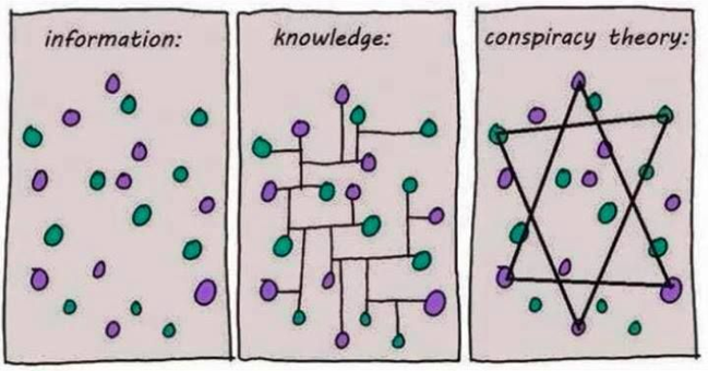 Logisch redeneren Complotdenken bestaat voor een groot deel uit intuïtie en speculatie. Het vrijdenken. Het andere deel bestaat echter uit logisch redeneren. Bijvoorbeeld het vanuit bekende, algemene patronen toe redeneren naar een specifieke gebeurtenis (deductief). Of het terug redeneren van een specifieke gebeurtenis naar een bekend patroon (inductief), zoals het bekende ‘verbind-de-punten’, genoemd naar de soort puzzel waarbij een figuur moeten worden getekend door de punten op het papier op de juiste manier te verbinden. Door schijnbaar ongerelateerde punten te verbinden, kan wellicht een patroon zichtbaar worden gemaakt. De punten staan natuurlijk voor de feiten van een gebeurtenis. ‘Connecting the dots’ Deductie is een manier van redeneren waarbij ‘top-down’ een gevolgtrekking wordt gemaakt van het algemene naar het bijzondere. Van generiek naar specifiek. Deductieve redeneringen zien er als volgt uit: - Als torens met vrijevalsnelheid instorten, dan is dat het gevolg van gecontroleerde sloop. Bij 9/11 stortten de WTC-torens 1, 2 en 7 ook met vrijevalsnelheid in. Bij 9/11 moet daarom sprake zijn geweest van gecontroleerde sloop; - Vaccins beschermen tegen infecties dus gevaccineerde mensen zijn beschermd tegen infecties. Ik ben gevaccineerd. Daarom ben ik beschermd tegen infecties en kan ik omgaan met infectieuze mensen; De uitkomst van deductie is nooit bewijs want deductieve redeneringen kunnen qua logica correct zijn maar toch de foutieve conclusie opleveren: - Alle vogels hebben vleugels. Een vliegende vis heeft vleugels. Daarom is een vliegende vis ook een vogel; In dit geval omdat er een drogredenering in voorkomt: de overhaaste generalisatie. Daarover later meer. Inductie is een andere manier van redeneren waarbij er ‘bottom-up’ van specifieke waarnemingen een algemene regel wordt afgeleid, vaak met een element van waarschijnlijkheid. Inductieve redeneringen zien er bijvoorbeeld zo uit: - Alle terroristen in dit krantenartikel hebben een baard. Dan kunnen alle mannen met baarden terroristen zijn (inductieve generalisatie); - In het verleden werden de meeste kleurenrevoluties door een vijandelijke veiligheidsdienst georganiseerd. Dan kan deze kleurenrevolutie ook door een veiligheidsdienst zijn georganiseerd (voorspellende inductie); - Bij gecontroleerde sloop storten torens in 99% van de gevallen in met vrijevalsnelheid. De WTC-torens 1, 2 en 7 stortten met vrijevalsnelheid in. De kans dat bij 9/11 sprake was van gecontroleerde sloop, is dan 99%; De Duck-test is een bekend voorbeeld van een intuïtieve manier van inductief redeneren: ‘Ik kan niet bewijzen dat het een eend is, maar als het eruit ziet als een eend, zwemt als een eend, en kwaakt als een eend, dan is het waarschijnlijk een eend’. Een inductieve manier van redeneren is dus ook de feiten van een gebeurtenis op een bekend complotpatroon proberen te passen. Ofwel: als een gebeurtenis alle kenmerken van een bekend complotpatroon heeft, dan zou het zo maar een complot kunnen zijn. Welke patronen complotten dan typisch hebben, zetten we in deel twee van het boekje netjes op een rijtje. Net als de deductieve redenering kan een inductieve redenering logisch correct zijn maar toch de verkeerde conclusie opleveren: - Eerste eend zwemt in het water. Tweede eend zwemt in het water. Derde eend... Er is geen eend op de wal of in de lucht dus alle eendjes zwemmen in het water; Inductief bereikte conclusies kunnen in het algemeen worden ontkracht of beperkt door uitzonderingen te vinden. In bovenstaande geval door te zoeken naar een eend die niet in het water zwemt. Voor de volledigheid en zeker in de context van complottheorieën moet ook nog het abductief redeneren worden genoemd, waarbij de meest plausibele verklaring voor een gebeurtenis als de juiste wordt gekozen. Deze verklaring hoeft andere verklaringen niet uit te sluiten en eigenlijk is dat precies wat een goede complottheorie doet. ‘In wetenschappen waar empirisch bewijs schaars is en experimenteren onmogelijk, zoals in de archeologie en paleontologie, is abductie soms de enige methode om tot conclusies te komen’ (Wikipedia). Alle redeneringen en feiten die samen een gebeurtenis verklaren, zijn in de context van dit boekje dan de basis van de complottheorie.
