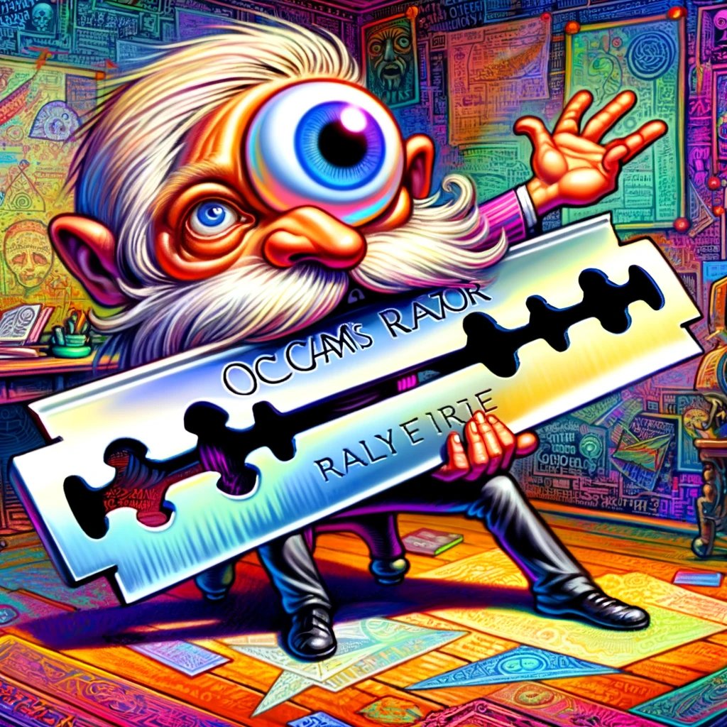 Ockhams scheermes Als er meerdere complottheorieën bestaan over dezelfde gebeurtenis dan kan Ockhams scheermes worden toegepast. De stelling die ook wel de wet van de spaarzaamheid wordt genoemd: ‘Wanneer er verschillende hypotheses zijn die een verschijnsel in gelijke mate kunnen verklaren, die hypothese moet worden gekozen die de minste aannames bevat. (Wikipedia). Hoewel dit een puur subjectieve keuze is, heeft het toepassen veel voordelen. Er is namelijk meestal maar één ‘eenvoudigste’ theorie terwijl er oneindig veel ingewikkeldere theorieën kunnen zijn. De eenvoudigere theorieën zijn eenvoudiger te controleren en kunnen makkelijker worden gebruikt als uitgangspunt voor het opbouwen van ingewikkeldere maar betere theorieën. Ockhams scheermes is vooral bedoeld om ervoor te zorgen dat theorieën zo eenvoudig worden gehouden. Niet om zonder controle de meest eenvoudige te kiezen.