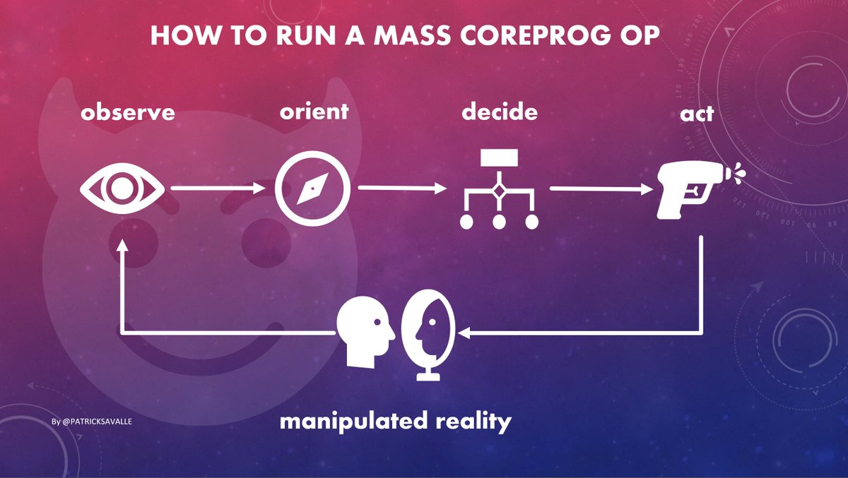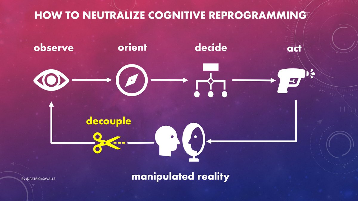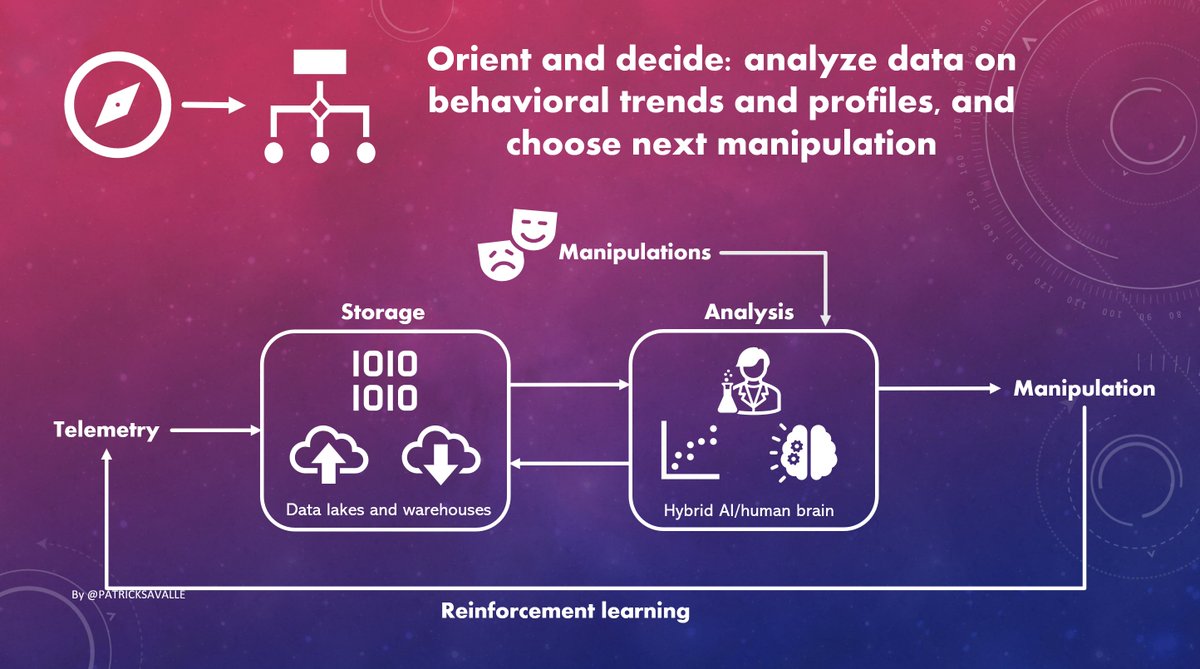 3/ The military calls this an OODA learning loop. REPEAT - Observe our behavior - Profile our behavior - Choose a suitable manipulation - Implement manipulation using the most appropriate 'weapon' - Confront us with a manipulated reality UNTIL REPROGAMMING SUCCESSFUL