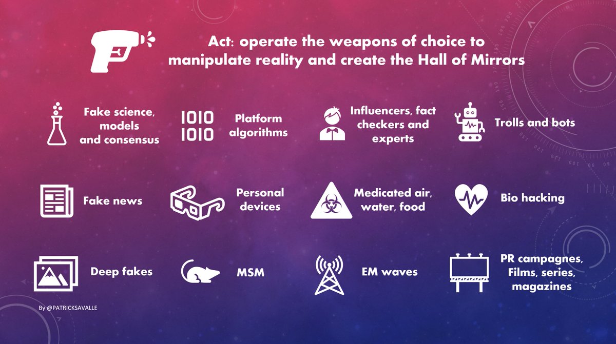 2/ The human psyche has vulnerabilities that can be exploited with specific manipulations. With these manipulations we are all fed a manipulated reality. Each his/her own Hall of Mirrors. These manipulations are like personalized psyops. How does this work?