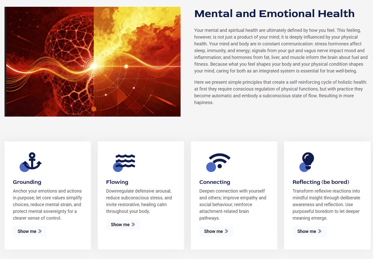 Laten we beginnen met de spirituele en emotionele gezondheid. Maar ook, hoe blijf je mentaal soeverein? Ik zeg dat je moet gronden, flow, verbinden, en vooral vaak verveling moet ervaren omdat dan de vervelende zelfinzichten naar boven komen. Zie https://androman.online/mind