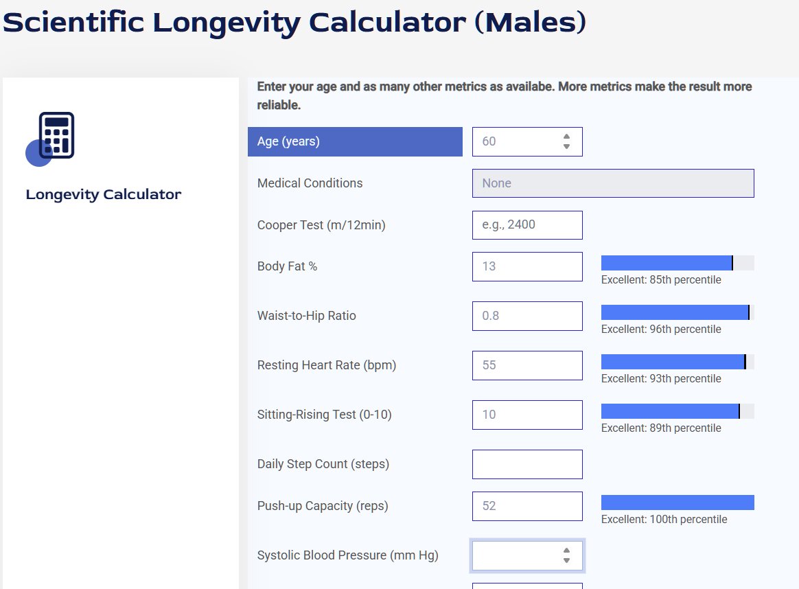 En voor iedereen die wil weten wat zijn biologische leeftijd is (zijn risico): ...ik heb HEEL VEEL WERK gestoken in een longevity calculator die nu binnen 1% is gecalibreerd van de grote real-world datasets. https://androman.online/longevity#fitcalculator