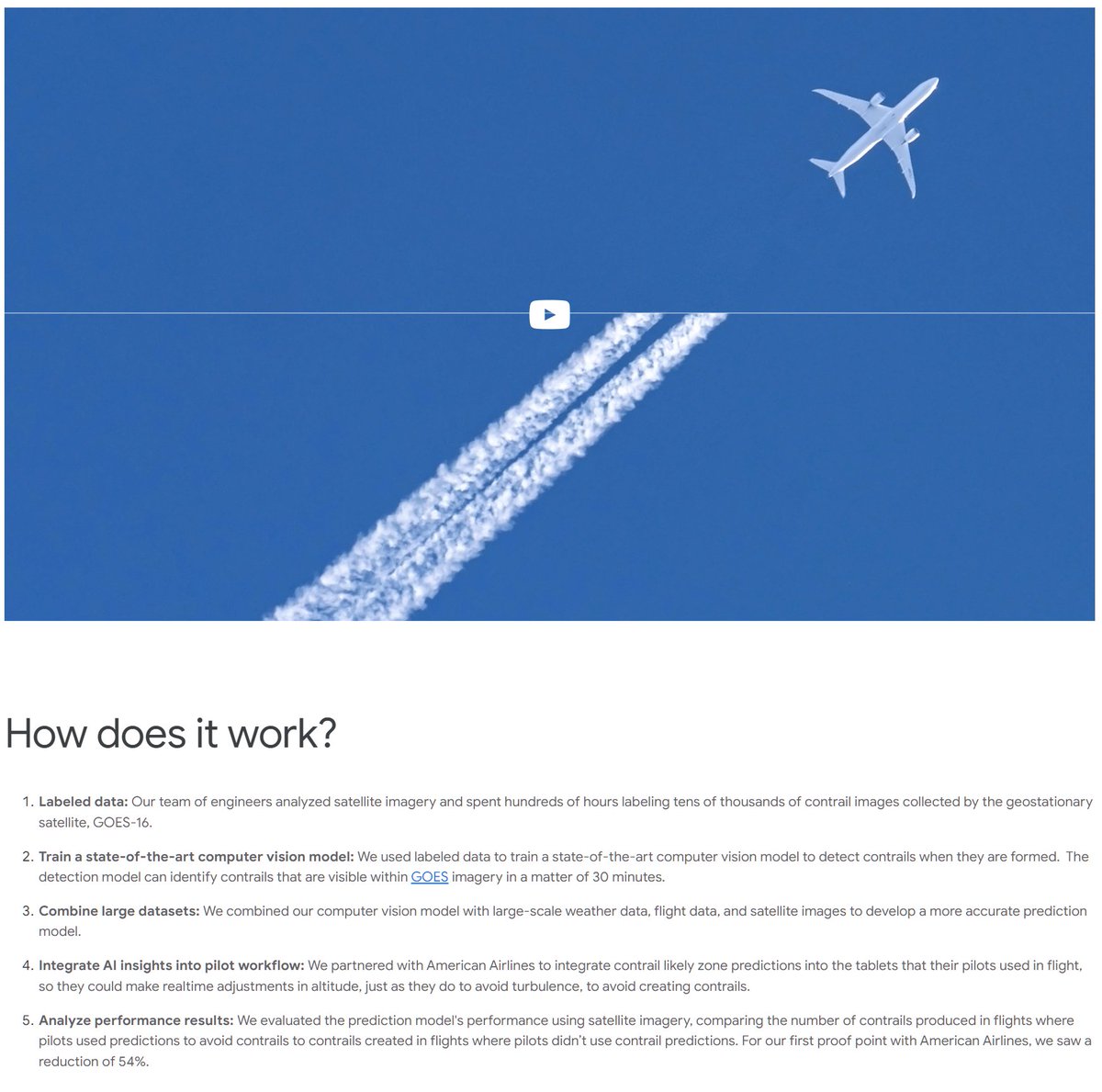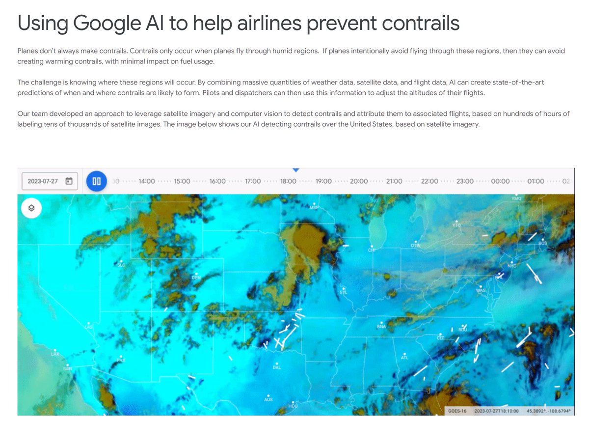 Iedereen ziet vandaag weer hoe de lucht helemaal dicht loopt met contrail cirrus. Melkwitte brakke luchten. Daar moeten we vanaf, daar zijn we het allemaal over eens. @superjan Er zijn ook gewoon oplossingen maar die worden vrijwel onmogelijk gemaakt door de chemtrail-hysterie. Naar mijn mening is het namelijk een psyop. De luchtvaart is zich heel erg bewust van de strepen-aan-de-lucht-poblematiek. Er zijn grote commissies en programma's die daar over gaan. Zie dit Google-research filmpje: https://www.youtube.com/watch?v=xBkK7olwjx0 Er is veel research naar contrails, er zijn goede werkende rekenmodellen en er is AI die kan voorspellen wanneer een vliegtuig wel of geen contrails zal produceren. De strepen boven de Atlantische oceaan worden ook geanalyseerd met bv de GEOS satellietbeelden. De oplossing is: met deze software en AI kunnen de commerciële vluchten zodanig worden gerouteerd, daar er vrijwel geen vliegtuigstrepen meer zullen zijn. Dat kost een luchtvaartmaatschappij ongeveer 3% extra brandstof. Dat kan besproken worden vanuit de politiek. @thierrybaudet @PvanHouwelingen @GideonvMeijeren Het onderwerp is echter nu al bijna onbespreekbaar geworden in de politiek vanwege de chemtrail-psyop en de volkomen belachelijke desinformatie die wordt geretweet. Hier het grote Google contrail project: https://sites.research.google/contrails/ Nu heb ik weinig vertrouwen in Google, maar het geeft wel aan dat de industrie het probleem heeft onderkend. (En dus ook de middelen en motief om er een psyop omheen te draaien.) cc @dancalegria In de geciteerde tweet Jim Lee, naar mijn mening de expert op dit gebied. Kijk de youtube, die heeft alles.