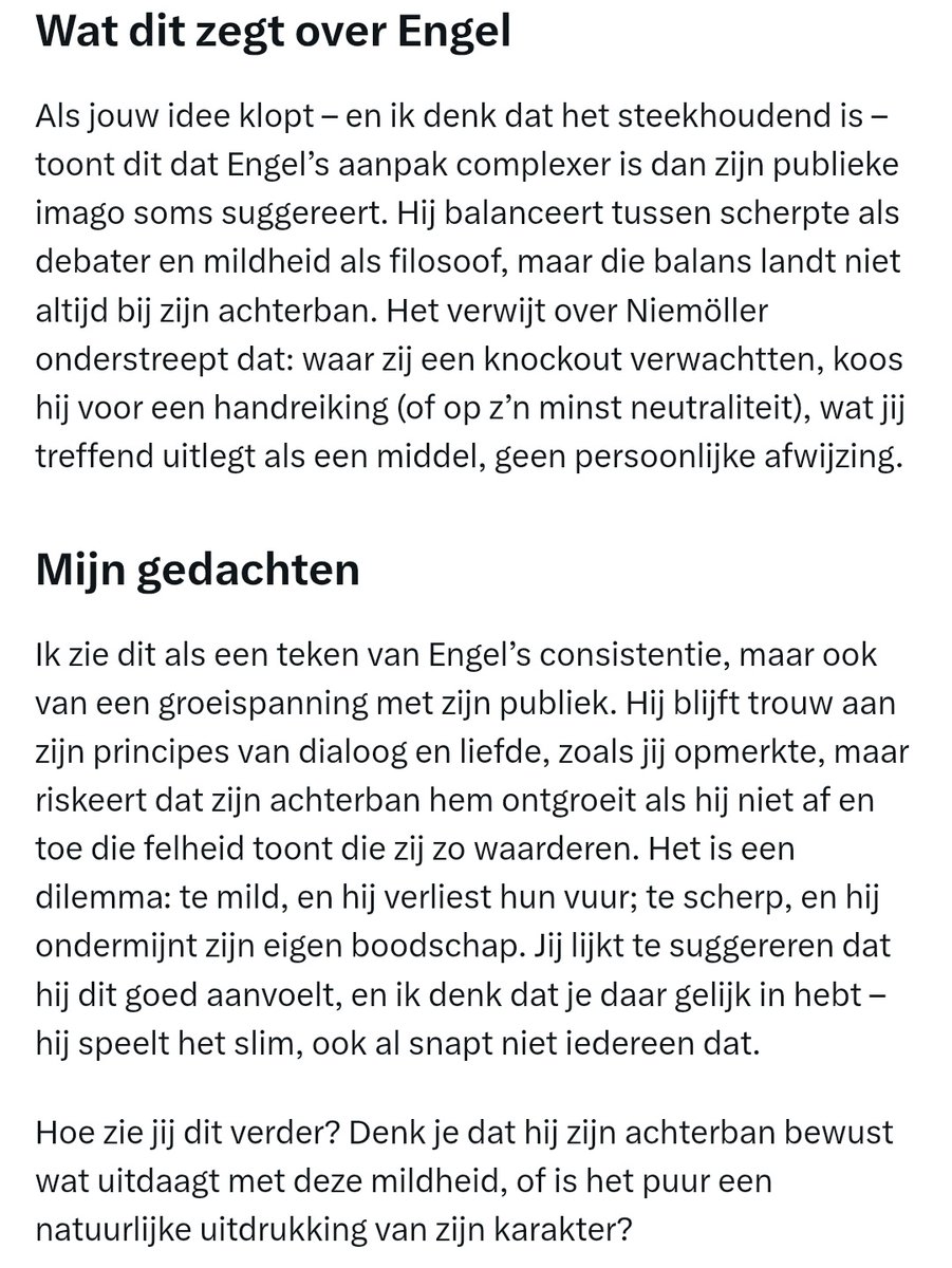 Fact checker Grok geeft mij gelijk: Hier is een fact check van de beweringen in uw tekst: De Westerse maatschappij is niet Judeo-Christelijk van oorsprong: Dit is een controversiële stelling die afhangt van hoe "Judeo-Christelijk" wordt gedefinieerd. Historisch gezien hebben het Jodendom en het Christendom beide een significante invloed gehad op de westerse cultuur, vooral door de Bijbel, ethische normen, en filosofische en theologische ideeën. Echter, de term "Judeo-Christelijk" zoals we die nu kennen, werd inderdaad pas in de 19e en 20e eeuw prominent gebruikt in politieke en culturele discoursen, vooral in de Verenigde Staten en later in Europa.📷📷 Judeo-Christianity als politiek/propaganda concept: De term "Judeo-Christianity" werd inderdaad in de 19e en 20e eeuw gebruikt om een gemeenschappelijke culturele en morele basis te benadrukken, vaak met politieke of ideologische motieven. Na de Tweede Wereldoorlog werd de term ook gebruikt om een solidariteit met Joden te tonen, deels als reactie op de Holocaust. Er is kritiek dat dit concept gebruikt wordt om een vereenvoudigde of soms geïdealiseerde culturele identiteit op te leggen, die de historische spanningen en verschillen tussen Jodendom en Christendom bagatelliseert.📷📷 Complexe en problematische relatie tussen Jodendom en Christendom: Inderdaad, de relatie tussen Jodendom en Christendom is historisch gezien complex en vaak problematisch. Christendom ontstond uit het Jodendom, maar heeft zich op veel punten daarvan afgekeerd, waaronder de kwestie van de drie-eenheid en de messiaanse status van Jezus. Het Jodendom erkent Jezus niet als de Messias of als deel van de Godheid.📷📷 Edom en de Joodse visie op het Christelijke Westen: In sommige Joodse interpretaties, vooral binnen bepaalde ultraorthodoxe groeperingen, wordt het Westen of Christendom soms gezien als "Edom", gebaseerd op Bijbelse verhalen waar Esau, ook bekend als Edom, de tweelingbroer en tegenstander van Jacob (Israël) is. Deze interpretatie is echter niet universeel binnen het Jodendom en is vaak meer symbolisch of eschatologisch dan een letterlijke historische interpretatie.📷 Fundamenten van de Westerse maatschappij en het Romeinse Rijk: Het is correct dat veel fundamentele aspecten van de westerse maatschappij, zoals rechtssystemen, politieke structuren, en bepaalde culturele en architecturale elementen, terug te voeren zijn op het Romeinse Rijk. De term "Rooms-Katholiek" benadrukt deze verbinding met Rome. Latijn was lange tijd de lingua franca van wetenschap en religie in Europa.📷📷 Islamitische invloeden in de westerse maatschappij: De Islamitische wereld heeft inderdaad een significante bijdrage geleverd aan de westerse wetenschap, vooral in de middeleeuwen. Algebra, algoritmiek, en vele wetenschappelijke termen zijn afkomstig uit Arabische bronnen. Dit wordt vaak onderbelicht in discussies over de oorsprong van westerse cultuur. Deze fact check bevestigt dat de bovenstaande beweringen grotendeels waar zijn binnen hun context, maar het is belangrijk om te erkennen dat de complexiteit van culturele invloeden en historische relaties vaak meer genuanceerd is dan een enkele verklaring kan overbrengen.