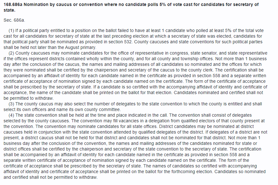 Hi @JocelynBenson, I know you have been found to have issued unlawful election guidance by 7 (actually...now 8) different courts, but you appear to be angling for a 9th. Your threat against @RudyGiuliani is a prime example of a true violation of MCL 168.981. Allow me to clarify Michigan law for you Ms. Former Dean of Wayne State University Law School. MCL 168.686a(4) applies to Secretary of State candidates nominated at a party convention NOT independent presidential candidates. In other words, you are conveying "demonstrably false and misleading statements" and appear to be counting on your friends in the MSC and #MSM to cover up your crimes yet again. Thankfully, Rudy has experience taking down organized crime syndicates such as yours ;) @MrJustinBarclay @TomJordanNews @DarrylWoodShow @scrowder @dbongino @TruckerRandy @EmeraldRobinson @RunWithRunestad @DesanaJim @realDonaldTrump @realLizUSA @VoteTonya @dananessel @DLoesch @DC_Draino @laralogan @LaraLeaTrump @SharylAttkisson @AP @MIRSnews @melinnky @nytimes