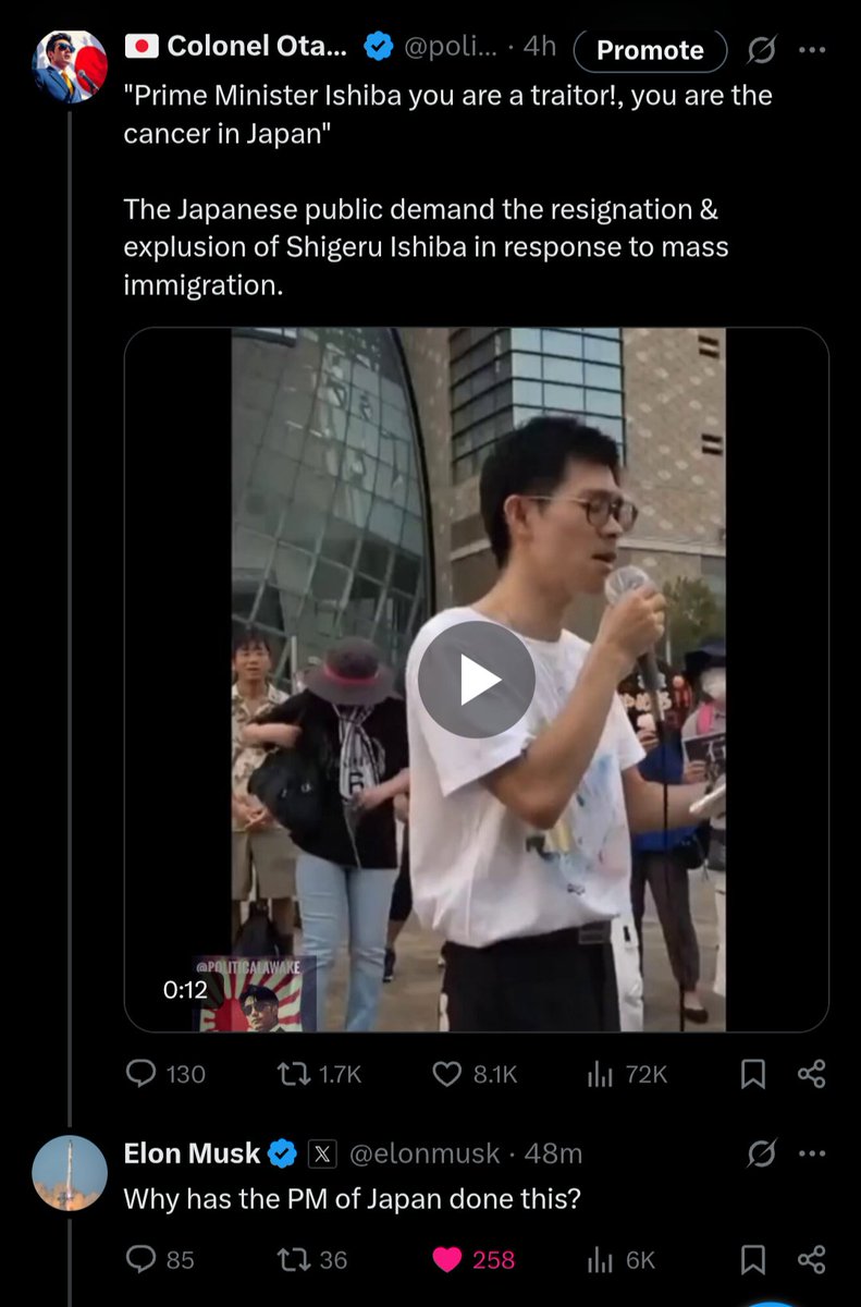 "Prime Minister Ishiba you are a traitor!, you are the cancer in Japan" The Japanese public demand the resignation & explusion of Shigeru Ishiba in response to mass immigration. https://t.co/0mywCJcUmt