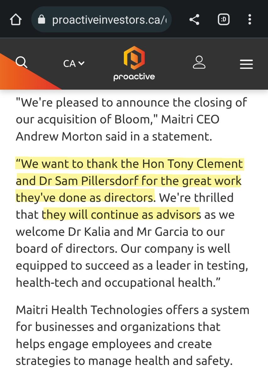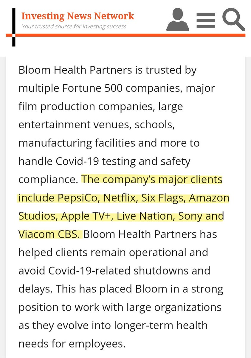 10) Bloom provides testing and data management services for theme parks, manufacturing facilities, major sporting events, schools, and TV and film production companies. Tony is no longer a director at Bloom Health Partners, but still works with the company as an advisor. https://t.co/9k15LMOh7Z