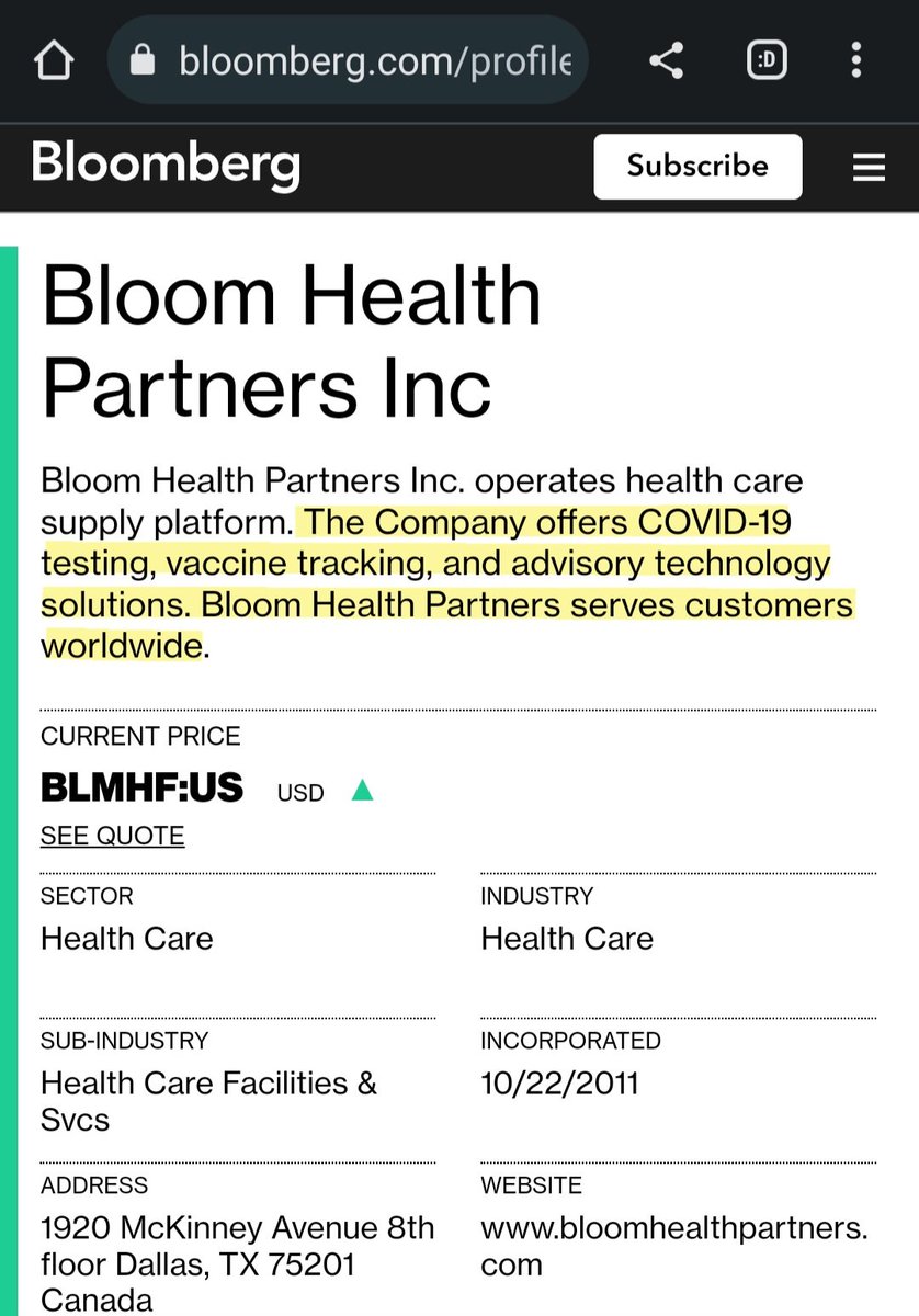 8) Bloom boasts of providing smarter, secure health data management for larger corporations worldwide, more particularly North America. https://t.co/Sl2WqHffue