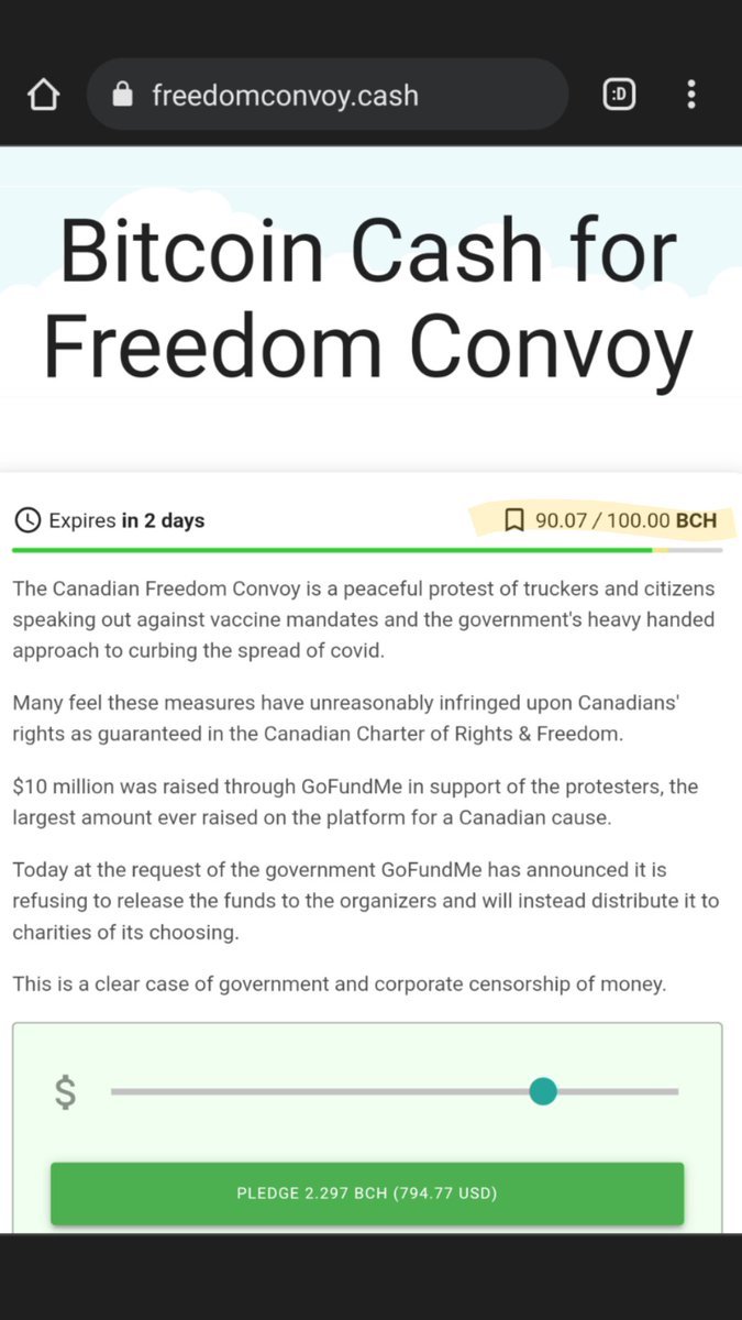 The #TruckersConvoy2022 $10MM GoFundMe money was seized by woke tech. @metapills started a @flipstartercash to bypass censors with #bitcoincash. Go contribute some #crypto. The honking will continue until freedom is restored. 🚛🚛🚛honk🚚🚚🚚honk🚛🚛🚛 https://www.reddit.com/r/btc/comments/skyfuy/flipstarter_bitcoin_cash_for_the_freedom_convoy/?utm_medium=android_app&utm_source=share
