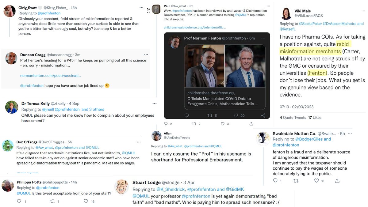 2. The article includes a link to a couple of the attacks on me. Here are just a few more examples. Note they were tagging in my employer Queen Mary (I did end up leaving in Dec 2022). https://t.co/UwubCzwDlk