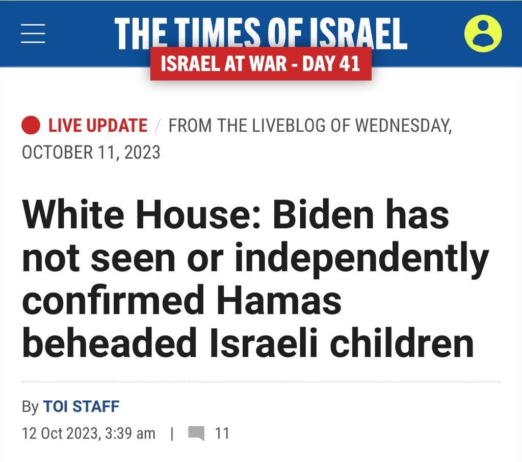 "I never really thought that I would see, have confirmed.. pictures of terrorists beheading children" President Biden - Oct 12