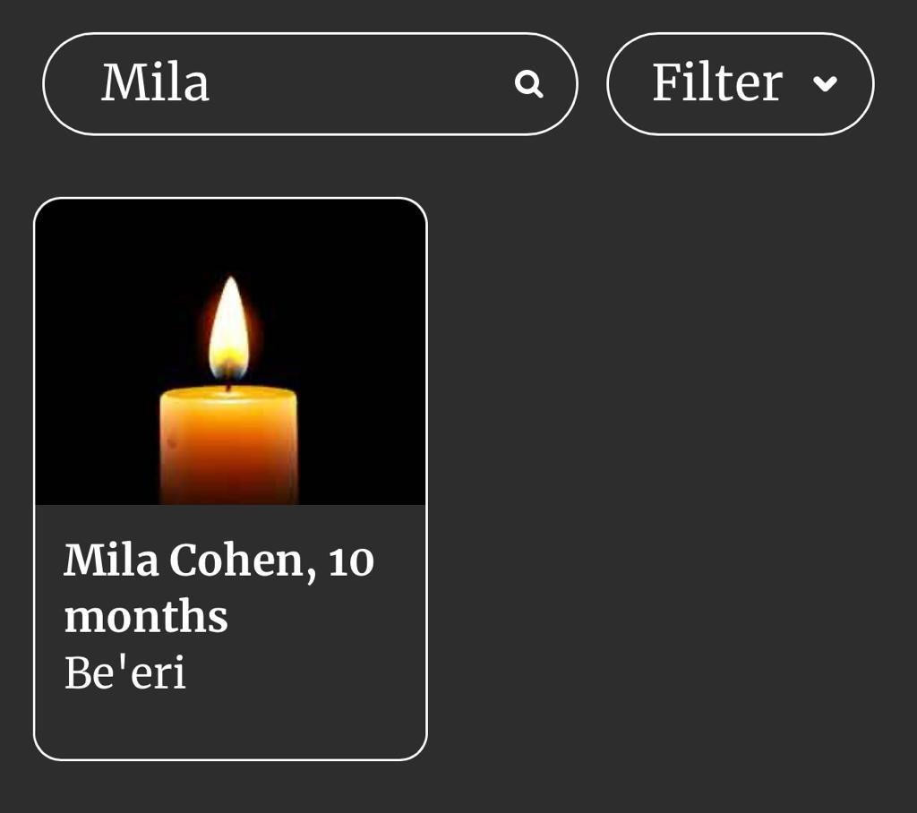 Haaretz has identified only one baby killed in the October 7 attacks so far. The circumstances are unknown, other than at Be'eri kibbutz.