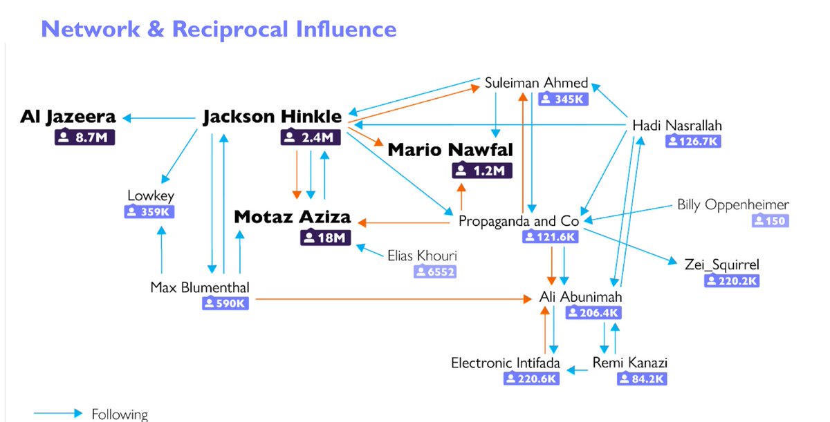 Cyberwell, an IDF unit 8200 spin off group dedicated to identifying “digital antisemitism”, produced a report mapping out the sources of Oct 7 and holocaust denialism Listed on the report is Mario Nawfal, Lowkey, Jackson Hinkle, Max Blumenthal, Zei Squirrel, Hadi Nasrallah, Ali Abunimah, Prop co and others. We just have one question, where’s Syrian Girl?