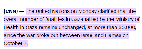 The UN debunked their lies too https://www.cnn.com/2024/05/13/middleeast/death-toll-gaza-fatalities-un-intl-latam/index.html#:~:text=The%20United%20Nations%20on%20Monday,and%20Hamas%20on%20October%207