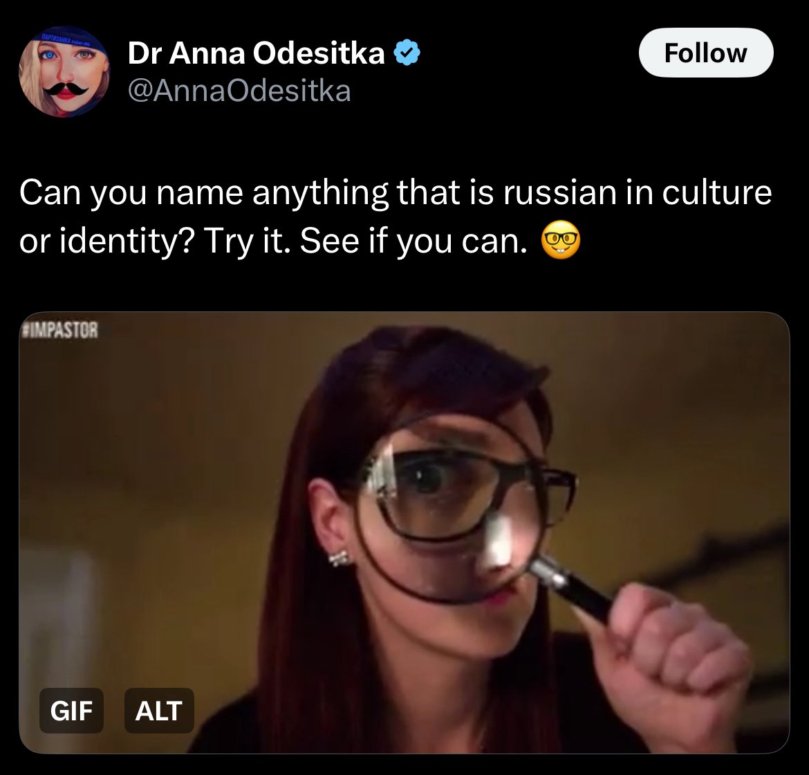 Pass this on to this imbecile…I’m blocked Science - Periodic Table of Elements (1869): Dmitri Mendeleev developed the periodic table, organizing chemical elements by atomic weight and properties, predicting undiscovered elements. This remains foundational to modern chemistry. - Probability Theory: Andrey Kolmogorov formalized modern probability theory in the 1930s, providing mathematical frameworks used in statistics, physics, and computer science. - Laser Technology: Nikolay Basov and Alexander Prokhorov co-invented the maser (1950s), a precursor to lasers, earning them the 1964 Nobel Prize in Physics for quantum electronics. - Transformers: Pavel Yablochkov invented the Yablochkov candle (1876), an early arc lamp, and contributed to early transformer designs for electrical distribution. - Radio Contributions: Alexander Popov demonstrated wireless telegraphy in 1895, contributing to the development of radio communication, though credit is shared with Marconi. - Semiconductor Theory: Boris Davydov’s work in the 1930s laid groundwork for semiconductor physics, influencing modern electronics. Music - Compositions and Musical Innovations: - Pyotr Ilyich Tchaikovsky: Created iconic ballets (Swan Lake, The Nutcracker, 1870s–1890s) and symphonies, blending Russian folk motifs with Western classical structures. - Igor Stravinsky: Revolutionized modern music with The Rite of Spring (1913), introducing complex rhythms and dissonance that influenced 20th-century composition. - Sergei Rachmaninoff: Composed piano concertos and symphonies (e.g., Piano Concerto No. 2, 1901), known for emotional depth and technical innovation. - Dmitri Shostakovich: His symphonies (e.g., Symphony No. 5, 1937) blended modernist techniques with Soviet-era expression, influencing global orchestral music. - Balalaika and Folk Instruments: Russians popularized the balalaika, a triangular stringed instrument, shaping folk and classical music traditions. Literature - Novels and Philosophical Works: - Fyodor Dostoevsky: Wrote Crime and Punishment (1866) and The Brothers Karamazov (1880), exploring existential and psychological themes, influencing modern literature. - Leo Tolstoy: Authored War and Peace (1865–1869) and Anna Karenina (1878), epic works blending history, philosophy, and realism. - Anton Chekhov: Innovated short stories and plays (The Seagull, 1895), introducing subtle character-driven narratives that shaped modern literature. - Alexander Pushkin: Created Eugene Onegin (1833), a novel in verse, considered a cornerstone of Russian literature and narrative poetry. - Science Fiction: Yevgeny Zamyatin’s We (1920) pioneered dystopian fiction, influencing works like Orwell’s 1984. Theater - Stanislavski System: Konstantin Stanislavski developed the “Stanislavski System” (late 19th–early 20th century), a method acting technique emphasizing emotional authenticity, adopted worldwide. - Moscow Art Theatre (1898): Co-founded by Stanislavski and Vladimir Nemirovich-Danchenko, it revolutionized stage production and premiered Chekhov’s major plays. - Biomechanics: Vsevolod Meyerhold’s theatrical system (1920s) used physicality and movement to convey narrative, influencing avant-garde theater globally Military - AK-47 (1947): Mikhail Kalashnikov designed the Avtomat Kalashnikova, a durable and widely used assault rifle, impacting global military design. - T-34 Tank (1940): Developed by Mikhail Koshkin, this WWII tank’s sloped armor and mobility set standards for modern tank design. - Katyusha Rocket Launcher (1939): A multiple rocket launcher used in WWII, it influenced artillery systems for its rapid-fire capability. - Sukhoi and MiG Aircraft: Soviet engineers like Pavel Sukhoi and Artem Mikoyan developed jet fighters (e.g., MiG-15, 1949), shaping military aviation. - S-400 Missile System: A modern Russian air defense system (1990s–2000s), widely exported, known for its advanced radar and missile technology.