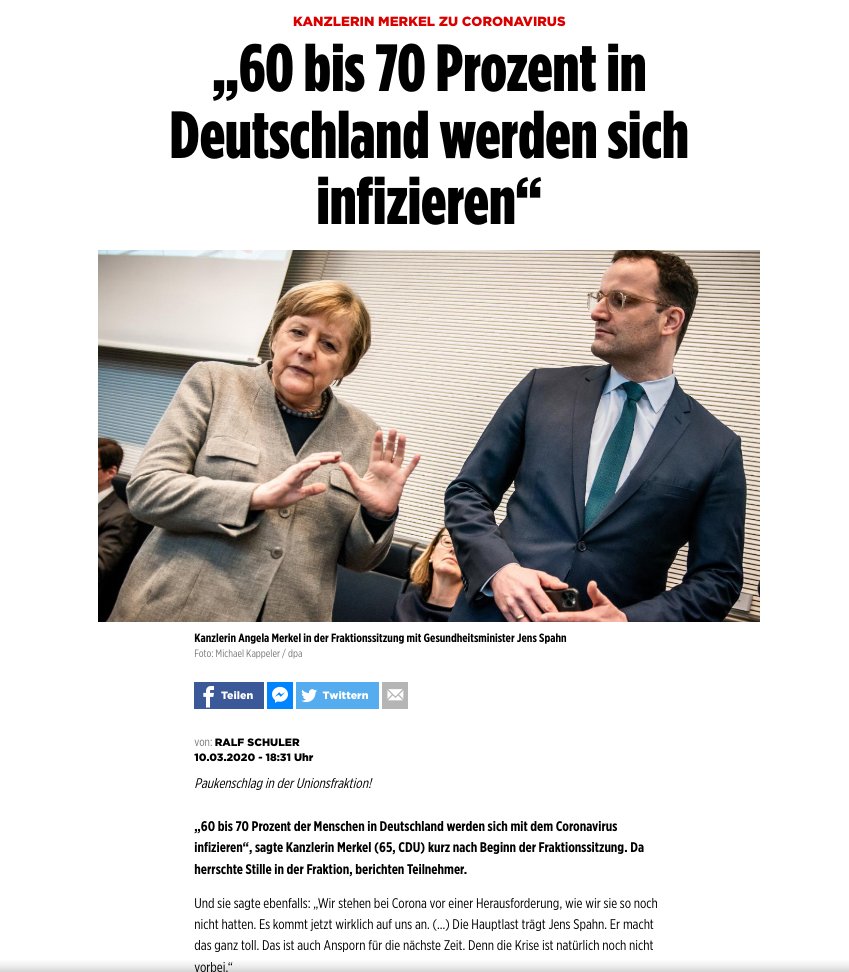 10.03.20 #Merkel: "60 bis 70 Prozent in Deutschland werden sich infizieren."
