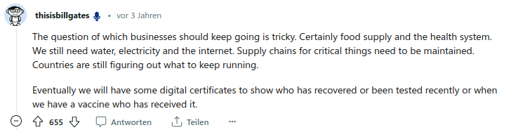 18.03.20 #Gates fordert Covid-Zertifikate in einem Reddit AMA. https://www.reddit.com/r/Coronavirus/comments/fksnbf/comment/fkuilyk/