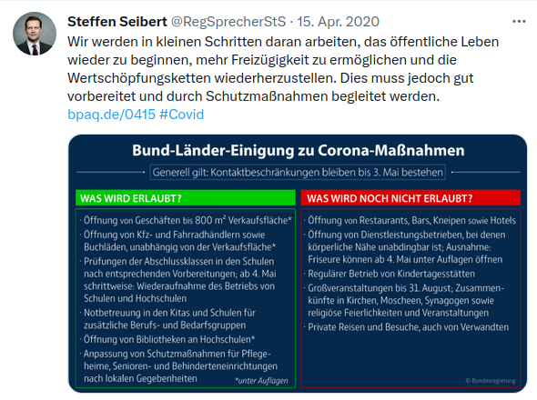 15.04.20 Die #Regierung kündigt Öffnungsschritte aus dem ersten Lockdown an.