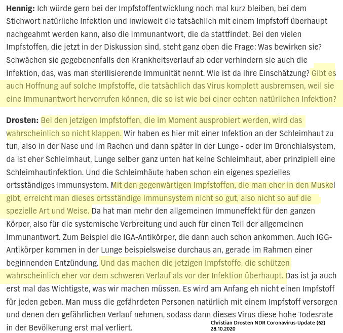 28.10.20 #Drosten sagt im NDR, dass Impfstoffe Ansteckungen wohl nicht verhindern werden. https://www.ndr.de/nachrichten/info/62-Coronavirus-Update-Der-Ueberlastschalter,podcastcoronavirus254.html