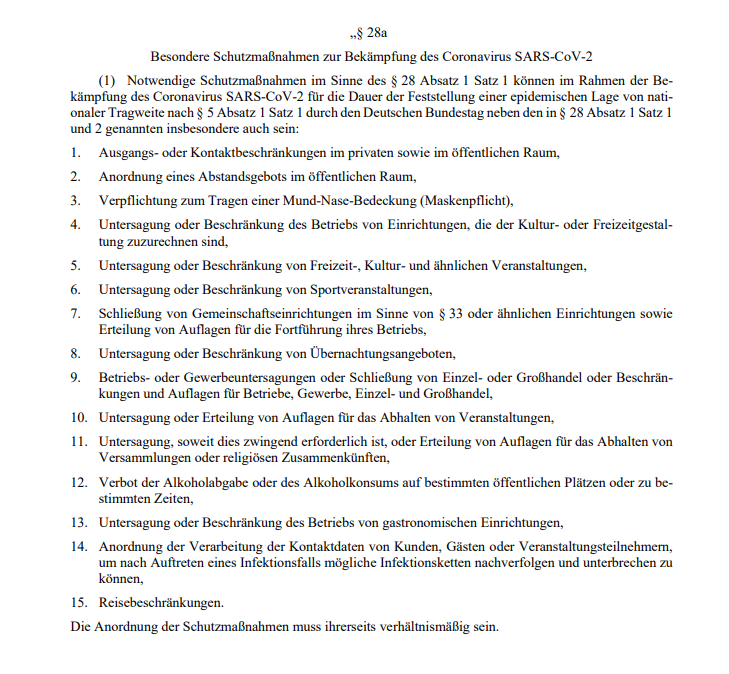 18.11.20 Unter massivem Protest wird die als "Ermächtigungsgesetz" verschriene Novelle des #IfsG durch den Bundestag gebracht. Sie gibt der Regierung umfassende Befugnisse zur Einschränkung der Grund- und Menschenrechte. #28a ist bis heute im #IfSG.