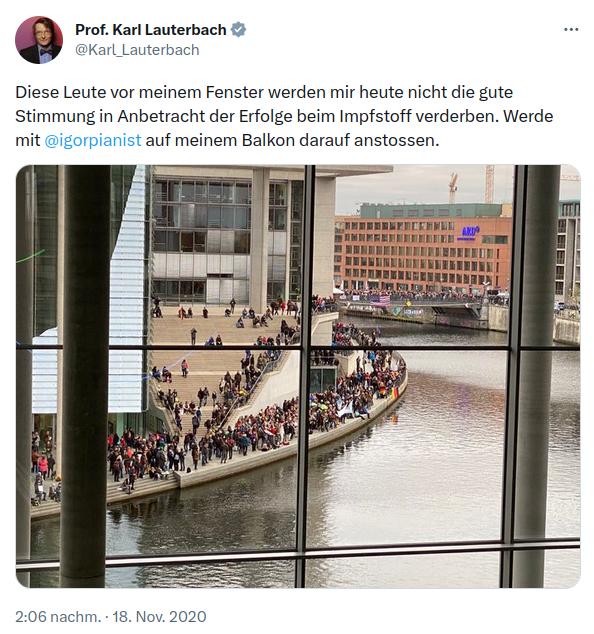 18.11.20 #Lauterbach kommentiert das Demonstrationsgeschehen aus seinem Büro.