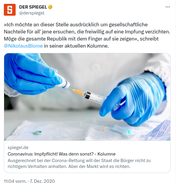 7.12.20 #Blome: "Möge die gesamte Gesellschaft mit dem Finger auf sie zeigen."