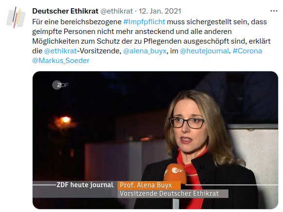 13.1.22 #Buyx: Impfpflichtempfehlung gilt nicht für Omikron. https://www.rnd.de/politik/ethikrat-vorsitzende-alena-buyx-impfpflicht-empfehlung-gilt-nicht-fuer-omikron-IRXWHSTWN2K5APUVXUWDZTPQMQ.html