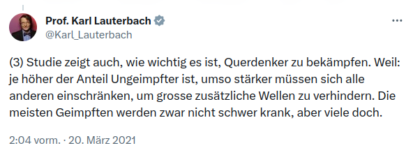 06.05.20 #Lauterbach: "Ich bin selbst ein klarer Gegner eines sogenannten Impfpasses. [..] Das wäre Zweiklassengesellschaft gewesen. Das haben wir gestoppt."