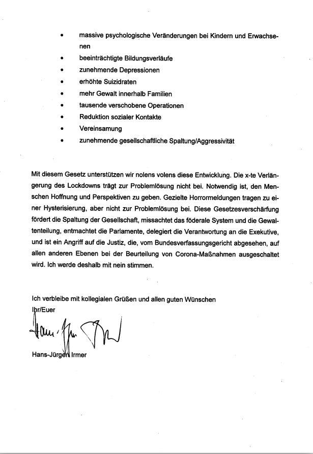 13.04.21 Hans Jürgen #Irmer (#CDU) schreibt einen Brandbrief an seine Franktion gegen eine erneute Novelle des #IfSG. "Föderales System wird ad absurdum geführt." #Bundesnotbremse