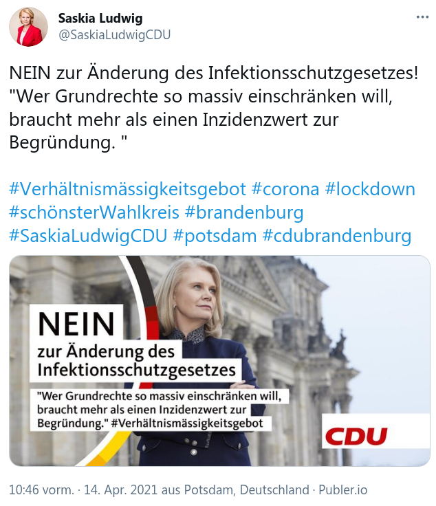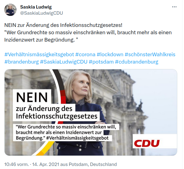 14.04.21 #Ludwig: "Wer Grundrechte so massiv einschränken will, braucht mehr als einen Inzidenzwert zur Begründung."