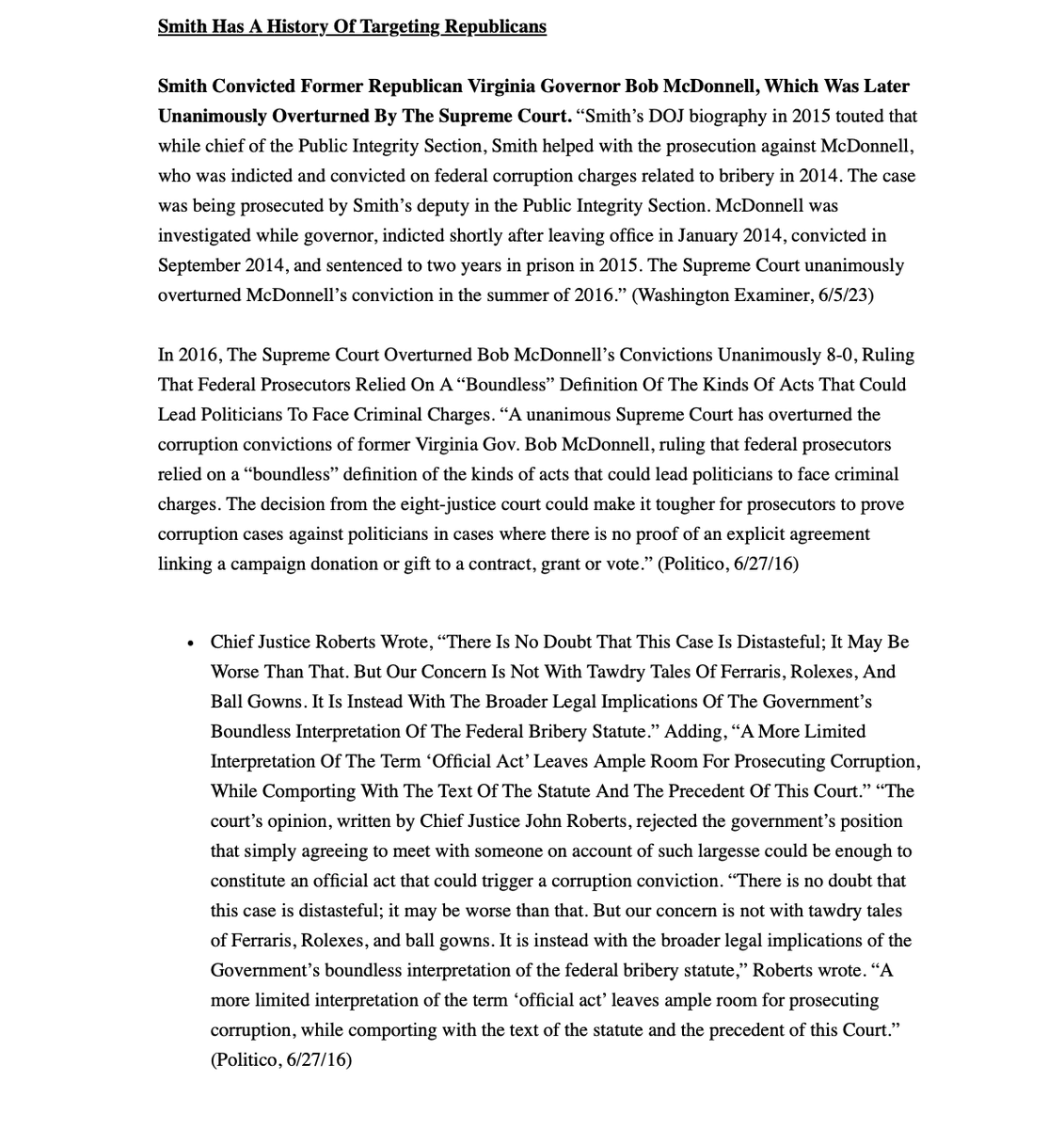 Smith served under Obama’s “wingman” Eric Holder Overturned unanimously by the Supreme Court in his political targeting of VA Gov Bob McDonnell Instrumental in IRS targeting conservatives scandal
