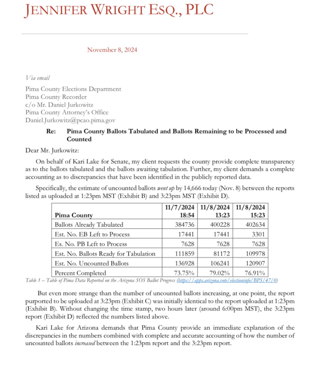 I think they also shaved off Lake votes in Pima County where she lagged behind by over 20K votes, which seems unlikely. We must investigate voter fraud and reform our election system. Counting for weeks makes for fraudulent results https://t.co/ebJCK9znAw