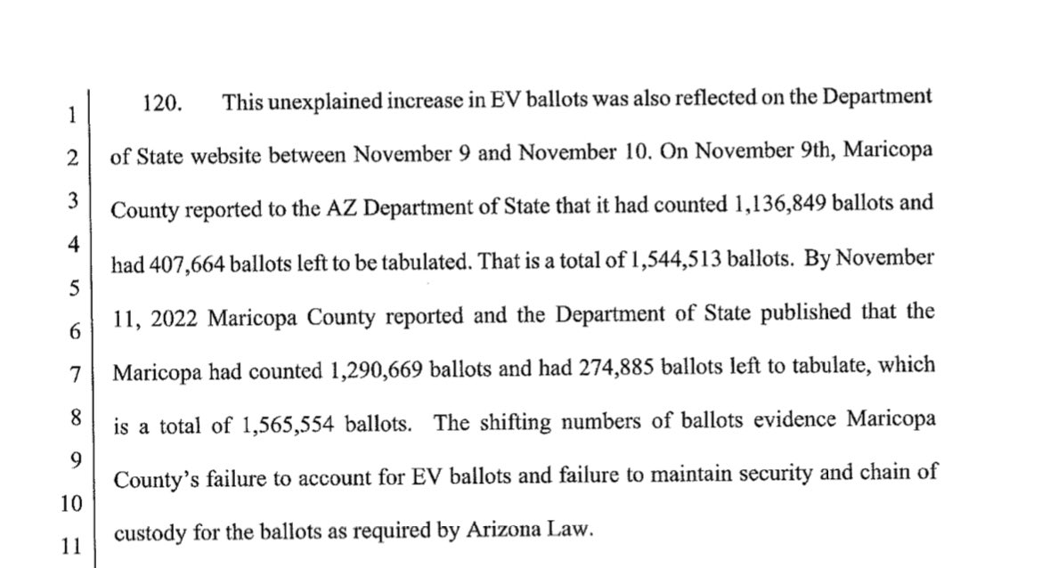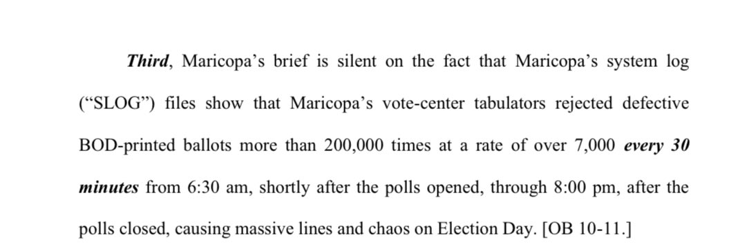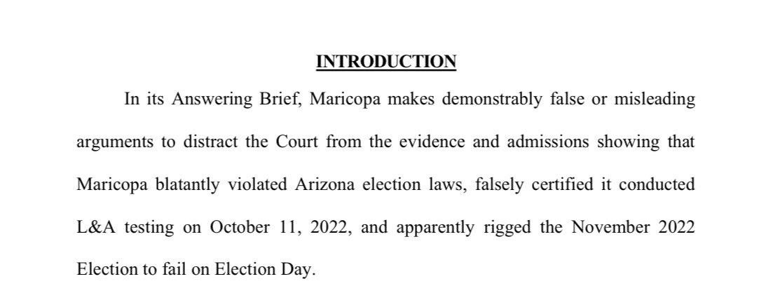 .@KariLake’s lawsuit: “Maricopa blatantly violated Arizona election laws, falsely certified it conducted L&A testing on October 11, 2022, and apparently rigged the November 2022 Election to fail on Election Day.” https://t.co/exP9HXALc9